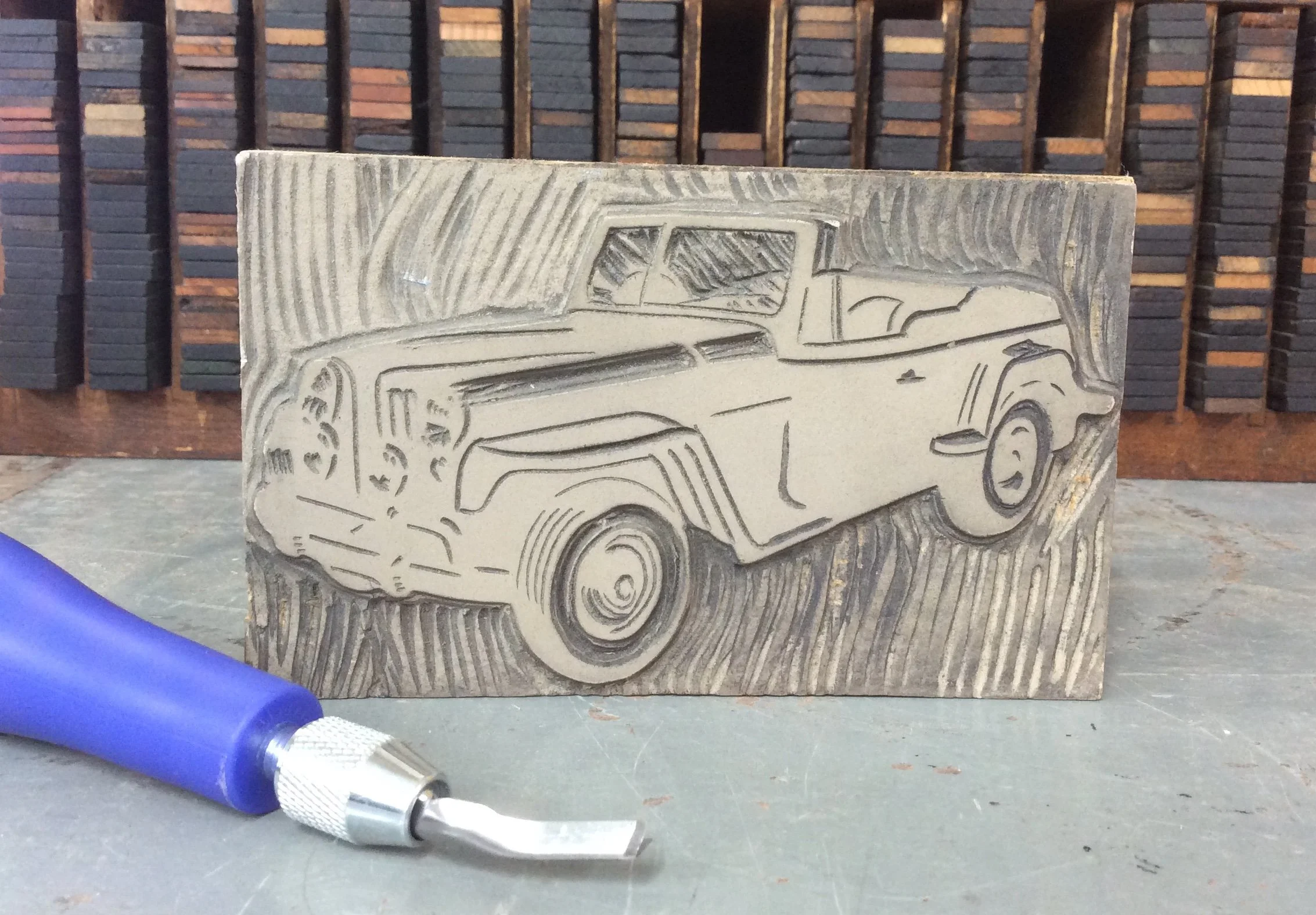 Linoleum carving is a common method used by printers to create illustrations and other shape-based elements in their print projects.